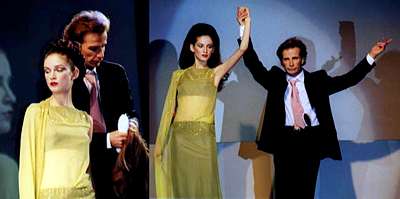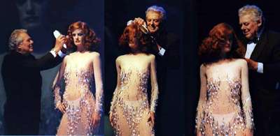 氏がステージから静かに消えると暗くなった舞台にはスポットライトを浴びた歌手のアマンダ リアが男性2人にエスコートされ登場しました。彼女はイタリア/フランスでは大人気の歌手でモーリスフランク氏の20年来の顧客です。今回は友情出演としてベルリンまで駆け付けてくれたとの事。