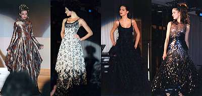 その間テンポ良く、両サイドからドミニックシローのエレガントなドレスをまとったモデルがウォーキング。その華やかさは、彼らが永年、働いてきたオートクチュールのショーを思い起こさせるような風景です。