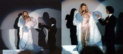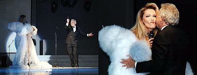 マレーネデートリッヒが舞台で着ていた衣装さながらの4kgもある大きな毛皮のコートにティエリーミュグレーの衣装、そしてブルガリの大きなダイヤモンドのネックレスでデートリッヒの歌を彼女らしいアレンジで歌い上げました。これはプログラムにもないサプライズは、リハーサルも朝一番に人払いをしながら行った、とても苦心をして実現した舞台でした。