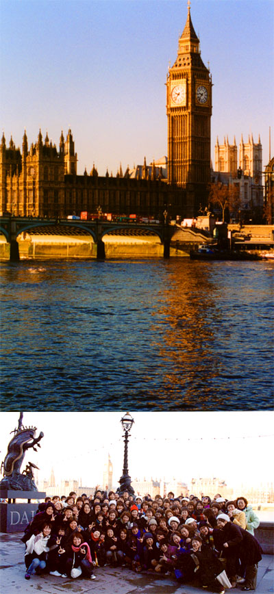本日からイヨイヨ待ちにまった海外研修旅行が始まります。日本は雲一つ無い快晴で、厚着をしてきている学生は少々暑そうでした。成田空港からロンドンまで約12時間。初めて飛行機に乗る学生もいて、少々緊張気味の様でした。しかし、朝早かったせいか、みんな無事に飛び立った事が分るとスグに寝てしまいました。