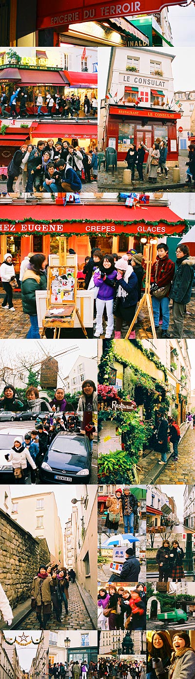 丘の上にあったのでスゴイ長い階段を登っていった。すごく息切れしたけど、上から下を見た景色は最高にキレイだった。モンマルトルには画家のような人が自分の絵を売っていたり、とっても素敵な街でした。家の窓からサンタの人形がよじ登っているように飾り付けされていたり、窓からいっぱいのサンタクロースが出ていたり、とっても可愛かったです。雑貨屋サンでMOULIN ROUGE(ムーランルージュ)のポスターを買いましたぁぁ。