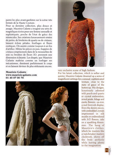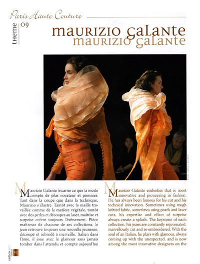 今回の号には、今年1月に行われたパリコレ、イタリアのファッションデザイナー、マウリツィオ・ガランテのデフィレ(ファンションショー)の様子が掲載されました。