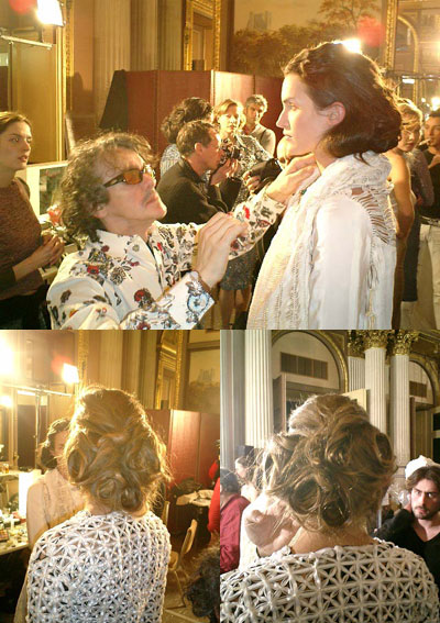 Salons d'hotes(サロン・ドット)アートディレクターのJean Claude Gallon(ジャン・クロード・ギャロン)は、シェフ・ド・コワッファー(このデフィレでのすべてのモデルのヘアを統括する立場)としてバックステージに入りヘア作成を行いました。