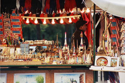 また、このエッフェル塔、世界でも有数な観光地、塔に上る為に並んで待っていたりすると、↑こんなお土産を売りにくる人がたくさんいます。お土産屋さんの ↓ 方が安いので、欲しいときは探してみてください。![]()