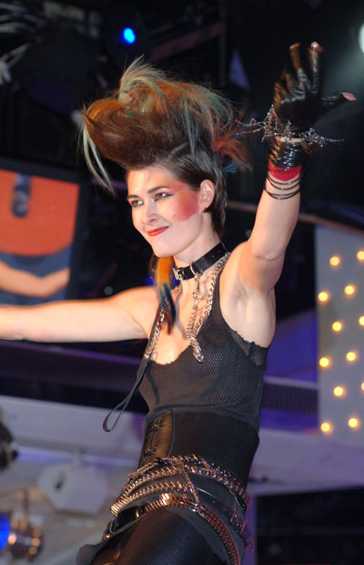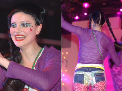 パンクです。カラフルな色に染められたエクステンション(付け毛)をふんだんに使い、ヘアスタイルも衣装も80年代に流行したパンク・ミュージックを思わせる不良っぽさが出ていますよね。
