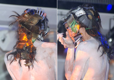 会場からは、歓喜の声が。。。。まさに『未来』そして『幻想的』とも思える作品でした。今回、激しいダンスやコミカルな動きで会場を沸かせたこのモデルさん達は、じつはモデルさんではなくパリでも歴史あるキャバレー『LIDO』のダンサーでした。