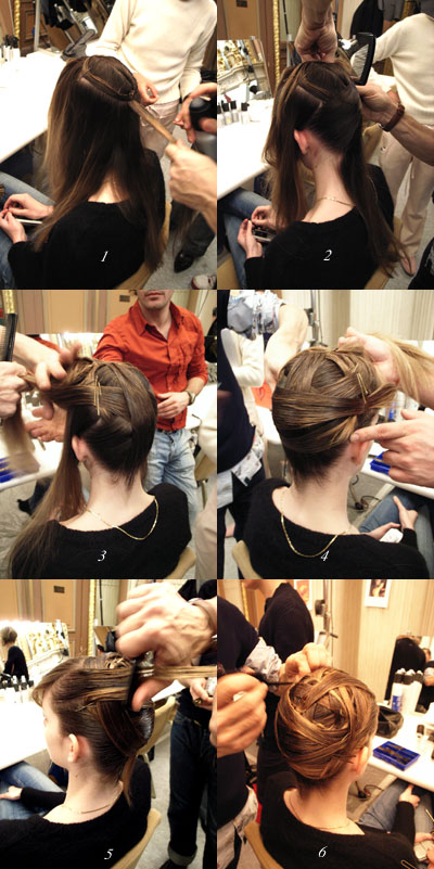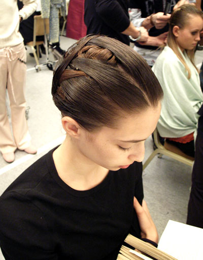 デフィレに出ているようなモデルさん、基本的に髪の毛が長い。その長さを感じないようにタイトにまとめる技術、なかなか難しい。