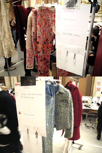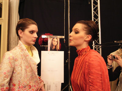 このようにぎりぎりまでヘアのチェックを続け、本番が終了するまでノンストップで動き続けます、当然、メイクさんもフィッティングを行うスタッフもバックステージは戦争のようです。