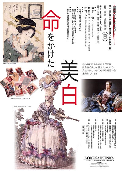日本の化粧(主催:学校法人 国際文化学園 / 後援:国分寺市、 国分寺市教育委員会、社会福祉法人 国分寺市社会福祉協議会、協力:株式会社 ポーラ・オルビスホールディングス、ポーラ文化研究所、復元衣裳提供:大妻女子大学)が、2010年6月19日(土)に国際文化学園 国分寺校3Fホールにて開催されます。入場は無料です(受講票にて お申し込みください)。