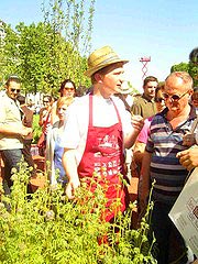 その菜園/庭の中には麦わら帽子とエプロンをユニホームにスタッフが私達の質問に丁寧に答え、説明してくれました。「これは繊維が生地:リネンになる植物ですよ」「砂糖大根は根を搾って、それを煮詰めると砂糖になり、葉と搾りかすは家畜の飼料します」など、思わず子供の様に目を丸くしながら聞き入りました。