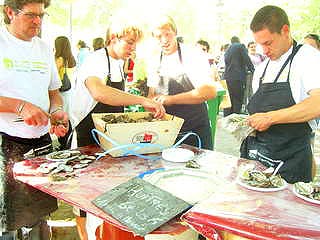 寒く冷たいブルターニュ地方からは新鮮な牡蠣がいっーぱい!。その場で殻をガンガンこじ開けて(って言う位、堅くって家で開けるのは至難の業)レモンをチョロッと搾って頂きまーす。ここで感心した事。さすがフランス。こんな道ばたでの立ち食いにも白ワインをご一緒に。うーん、食は文化ですね。と頷きました。