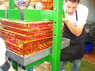 これは何?道ゆく人々も参加して。。。昔、昔のりんご絞り、だそーです。