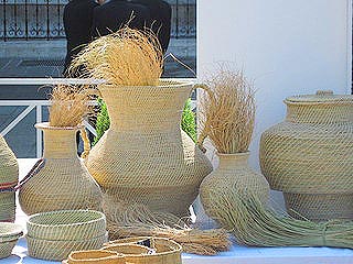 チュニジアの高い場所で育つ高山植物を編んで作った籠、お盆、ゴザ?や小物。