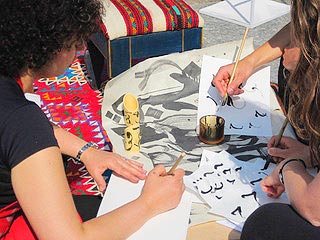 こちらはアラビア語の手習い。日本のお習字のようですね。独特の筆?ペン?で書く?描き?ます。なんと異国情緒があり美しいのでしょう。そして思ったのは、、、意味不明な漢字のTシャツを着た外国人。その方々もそんな感じなのでしょうか?