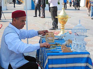 村の入り口ではオレンジフラワーの香りを「シュッ」とかけてもらい(あら良い香り、、、)、と顔をあげるとジャスミンティーと、甘いチュニジアのお菓子を頂き、すっかり良い気分なんて、ゲンキンな胃と心なのでしょう。