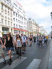 パリでは昔のローラースケートも新しい物も一般的には「ローラー」と呼ばれています。大流行を通り過ぎ今ではひとつの交通手段として、サイクリングに代わる娯楽として定着しました。