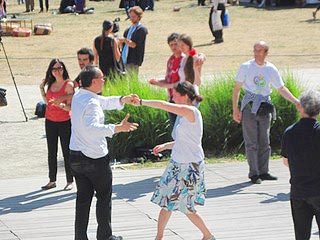 そのテラスの下では各種ダンスが、朝から夕方まで ちゃんと指導してくれるから初めてのダンスでも安心。ロックンロール、社交ダンス、サルサ、タンゴ、ヒップホップ、ジャズダンス、オリエンタルダンス、etc,etc,。何か新しく始めたい人には良い機会かも。