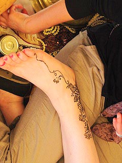 アラブ諸国、北アフリカの伝統文化です。一週間位ももつんですって。私はトライしませんでしたが、入れ墨の様に痛そうではないし、生涯共にするわけでもないので、見るだけには違いないのですが、心なしか安心して見入る事が出来ました