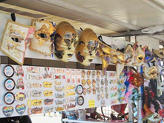 出店で売られているのは、さすがヴェネチア。お値段の割に綺麗なもの、コクのある色のクラシカルなもの、目を惹く仮面が沢山ありました。
