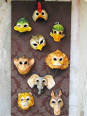 ブティックをのぞくと凝った動物もの、妙にリアルな仮面も見つけました。