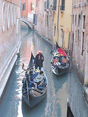 街の中の小さな道は迷路のように狭く曲がりくねり、自動車も自転車も入れません。通りの替わりには水路がひかれ、ゴンドラやボートで行き来しています。運河や大きな水路は水上バスや水上タクシーを利用していました。それでも小さな街なので不便は感じません。
