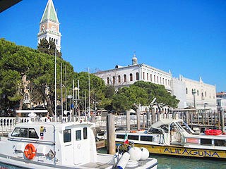 という訳で私たちはローマ広場で車を降り、水上バスでヴェネチア本土に向かいました。私たちが訪れる前の週まで雪が降り、零下の日々が続いていたらしいですが、この日は晴れて まっ青な空。これはマルコポーロ広場の船着き場です。