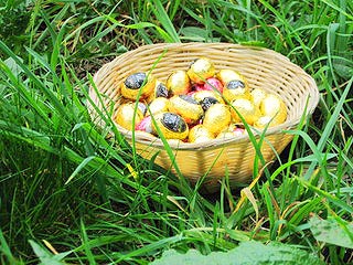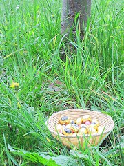 フランスでは この日は どう過ごすのでしょう? 伝統的遊びとして有名なのは、お庭や お部屋に大人達が卵のチョコを隠します。それを子供達が探します。普段と違いチョコを両手いっぱい抱えても文句言われない。いっぺんには食べなくとも、それは何とも特別に楽しい一日なのです。