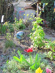 800m2という空間に彼らは二つの小さな下町風のお家(=小屋?)を建て、大きな創造的な庭を造りあげました。