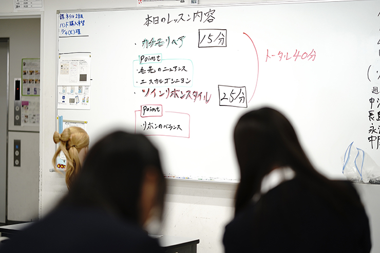 [夏休み]までに『体験入学会』を通じさまざまな[技術]に触れて[理美容業]という[職業]とのマッチングを確認し、[夏休み]明けからは『トライアルレッスン』という[模擬授業]を通じ『国際文化理容美容専門学校 渋谷校/国分寺校』という[学校]とのマッチングを確かめてもらおうという計らいだ。