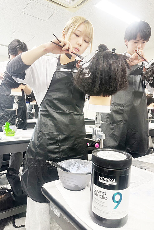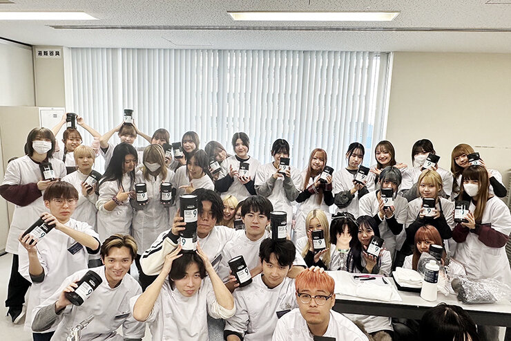 学生たちは、一人一人に[無償提供]された[ブリーチ剤500ml]に大喜び。いつになく嬉々として[ブリーチ講座]に取り組んだのでありました。