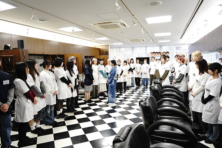荘司学校長は、本学(国際文化理容美容専門学校 渋谷校/国分寺校)の母体である『学校法人 国際文化学園』の理事長をも兼務しているので超多忙。加えてさまざまな[理美容団体]の理事長や役員も務めているので、常に[理美容業界]のお偉い方々との懇談がひっきりなし。